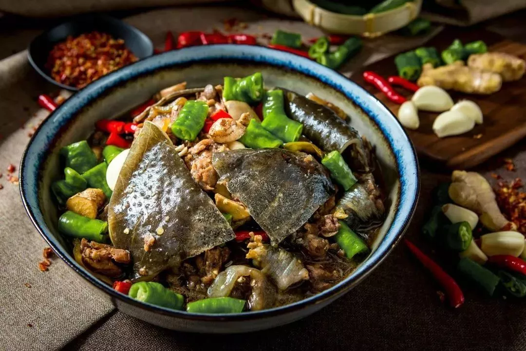 霸王別姬”是水魚(yú)三吃中的第二吃。以甲魚(yú)殼搭配走地雞、再加上是菌中皇后—— 竹蓀,用來(lái)煲湯,具有滋陰補(bǔ)腎、美容養(yǎng)顏,同時(shí)還有預(yù)防和抑制癌癥等等功效,男女老少都適合。