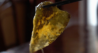 肥美裙邊裹著咸鮮的湯汁,夾一塊,還能夠感受裙邊的抖動(dòng)。入口先是油潤(rùn),而后松軟Q彈,一吸入喉,唇齒間留香,忍不住再來(lái)一塊!
