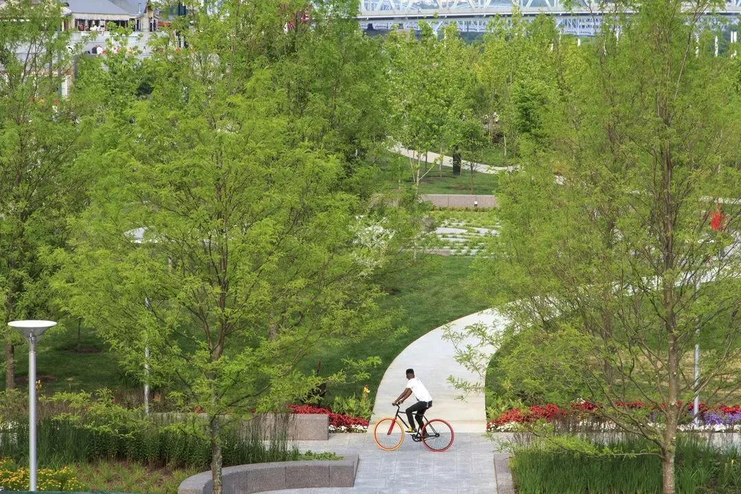 沿河公園形成連續(xù)的開放空間鏈,連接州立休閑道與自行車道系統(tǒng),并將辛辛那提市中心與大俄亥俄河連接起來。Sasaki的公園設(shè)計為羅布林大橋——歷史性重要建筑地標——創(chuàng)造了合適的背景,同時提供大型聚會、靜態(tài)休閑以及項目活動的空間。