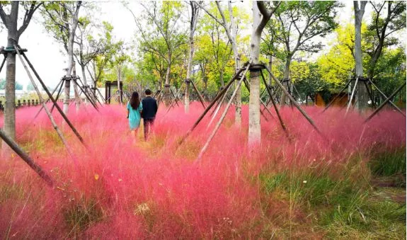 商丘市虞城縣:濱河公園美如畫 粉黛亂子草正紅