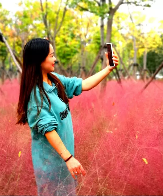 在河南省商丘市虞城縣濱河公園,數(shù)十畝粉黛亂子草溫柔綻放,濱河公園風(fēng)景美如畫。圖為2020年10月11日,雨后粉黛亂子草覆滿了一層粉紅,有的像紅色的霧團,有的像紅色的云朵,有的像繪畫里的一抹腮紅。