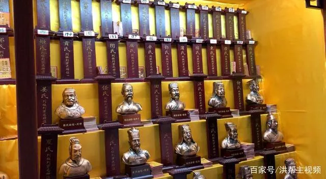 從正路一直到最后舜帝雕像的大廳看完后,我們從右邊返回,這里有一個(gè)房間,里面陳列著百家姓300多個(gè),百家姓都是由上古八大姓氏發(fā)源出來的,所以基本都算是舜帝的子孫。游客到這里基本都會停留一下,尋找一下自己的姓氏,還有自己姓氏里的古代名人。