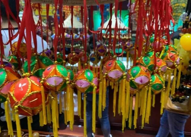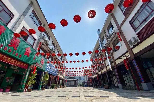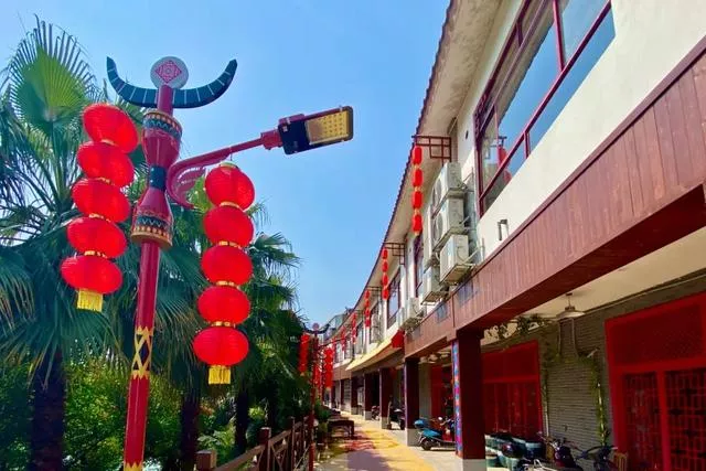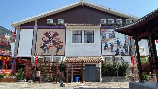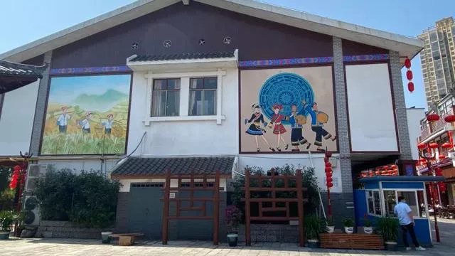 我們再來看看改造之后的翠屏水坊,如今已經(jīng)變成了來賓壯鄉(xiāng)瑤韻風情美食城。走進其中,看見火紅的燈籠高高掛,整齊的路燈展現(xiàn)出濃郁的民族特色,四處墻壁也已繪制出壯瑤民族彩畫……美食街已經(jīng)煥然一新: