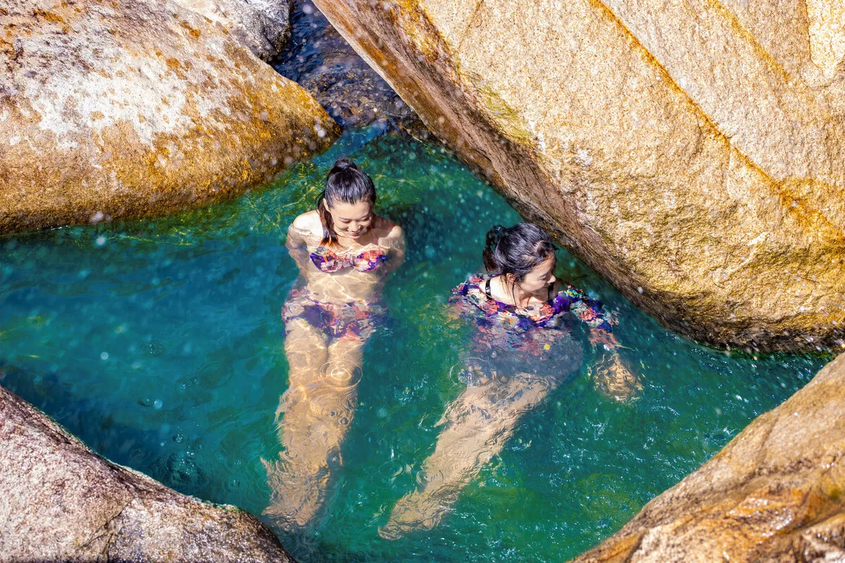 慵懶的泡在溫泉水中,