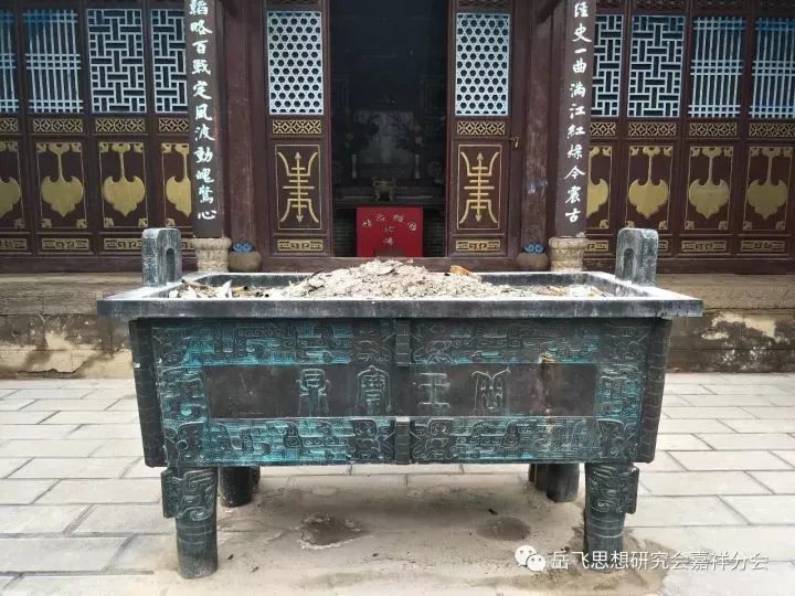 公元2016年12月1日“岳王寶鼎”喜降山東嘉祥岳飛紀念館(原岳樓岳氏家祠)。岳王寶鼎由青銅鑄造,正面鑄有“岳王寶鼎”,字樣,一側鑄有“岳飛思想研究會會長岳朝軍攜全體會員敬贈”字樣,長2米,寬1.1米,高1.3米,置放在紀念館大殿正前面,坐北朝南,與飛祖銅像,大門,過廳,寶鼎,大殿一條直線排列 !