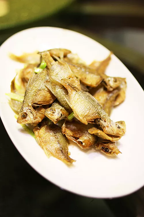 椒鹽旁皮魚(yú)。旁皮魚(yú)個(gè)頭嬌小,長(zhǎng)不過(guò)扎,用來(lái)炸制骨酥肉嫩。非常補(bǔ)鈣,小朋友吃起來(lái)也沒(méi)有負(fù)擔(dān)。