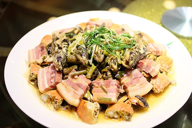 河鮮大聚會(huì)。淀山湖里野生昂刺魚(yú)、白米蝦和螃蟹,匯集剛立冬時(shí)腌制的咸豬肉,鮮香開(kāi)胃。超大一份既飽眼福又飽口福。