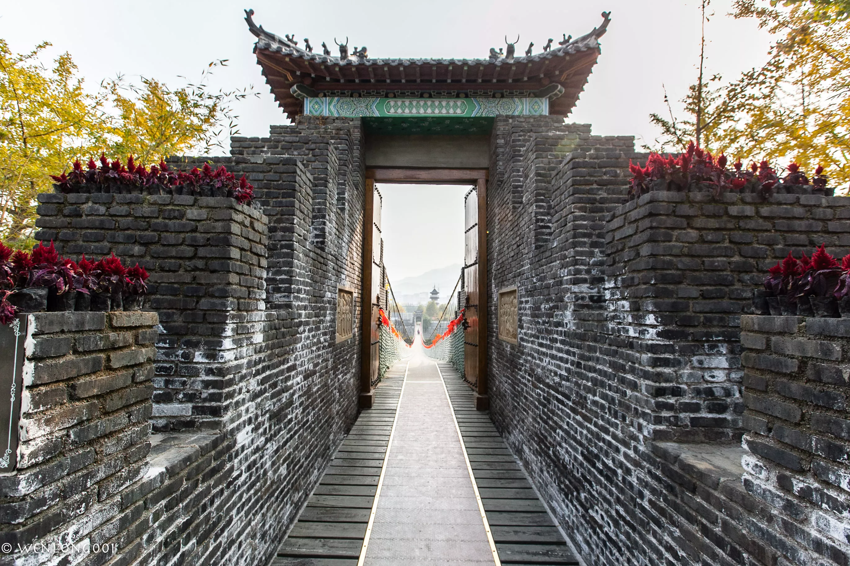 黃金河度假村分南區(qū)北區(qū)兩大區(qū)域,并由北方第一懸掛式吊橋連接而成,有意思的是當(dāng)沿著吊橋行走時(shí),會(huì)經(jīng)過(guò)正在使用的馬路,會(huì)看到汽車(chē)在吊橋下面穿行。