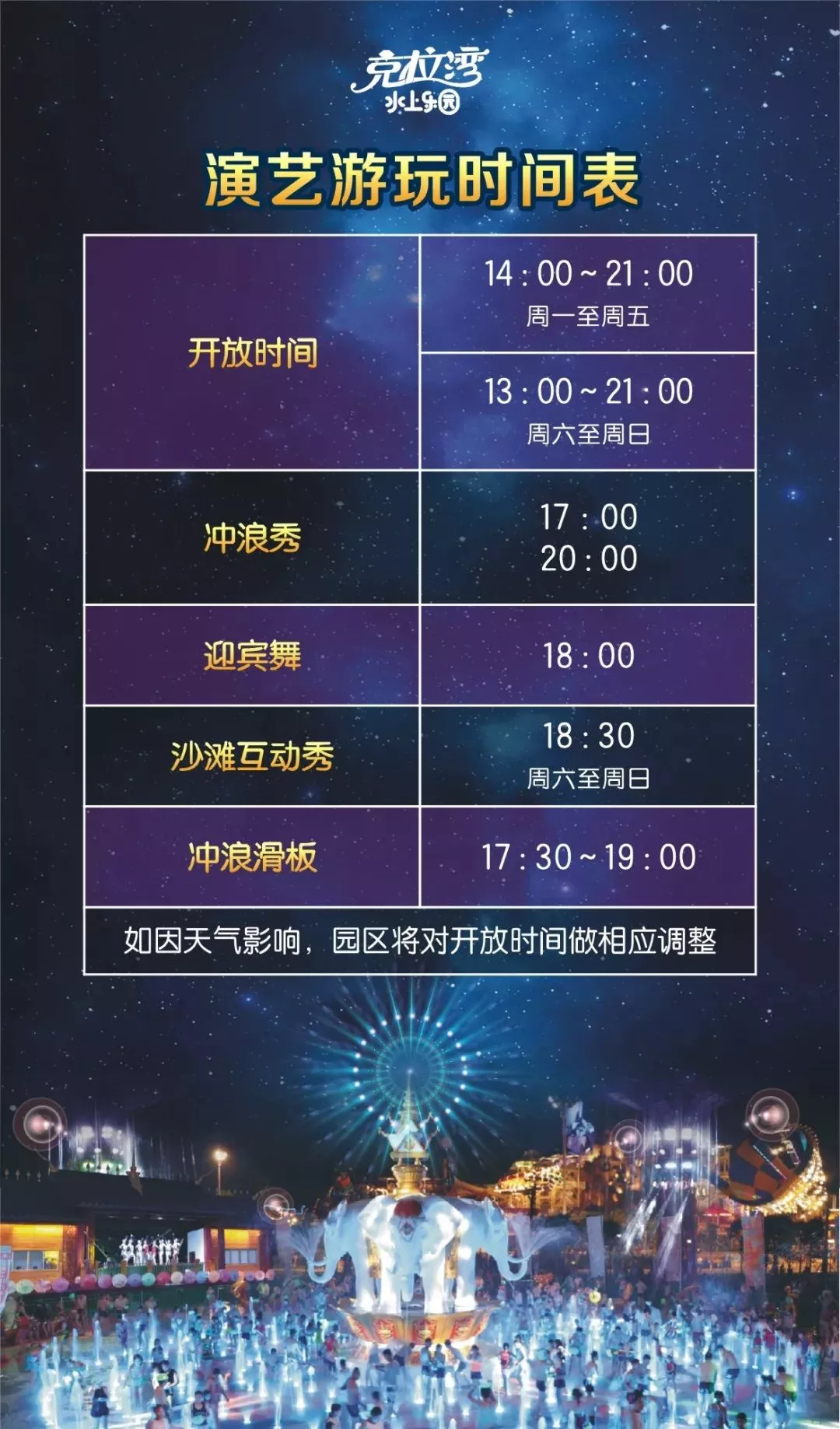 克拉灣水上樂園將開放時間進行了調整