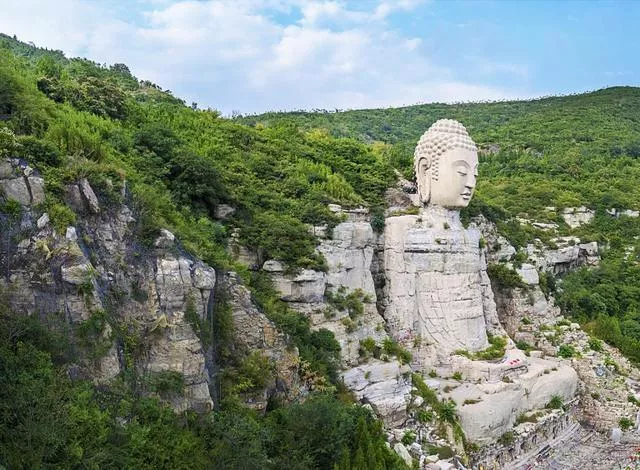 佛像依山而立,或鑿山而建,氣勢(shì)磅礴,震撼人心。北齊開鑿,歷時(shí)24 年,比樂山大佛早162年。摩崖石刻高約63米,比樂山大佛低8米,是世界上最早、最大的摩崖造像。走在景區(qū)的路上,看到的時(shí)候流水潺潺,清新宜人;看到的時(shí)候叢林密布,綠意盎然。景點(diǎn)棧道設(shè)計(jì)舒緩,沿棧道緩緩上升,視線稍縱即逝,移步換景,十分養(yǎng)眼。周圍有鐵佛殿、連理塔等景點(diǎn)。太原古代八景之一的蒙山曉月,賞月觀月,風(fēng)景獨(dú)特。天堂出一輪天堂,人間萬姓仰望。