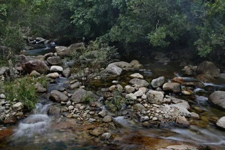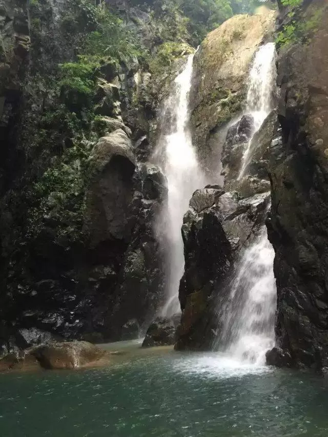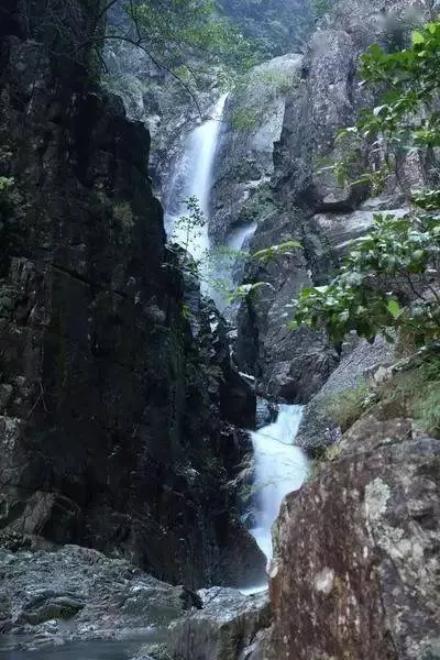 仙居谷中溯溪而上,可見中沙瀑布,中沙瀑布由尖峰嶺原始森林分支下來的一支水系穿山越嶺形成。溪流里有大大小小的瀑布美景形成“天水奇觀”,美不勝收。