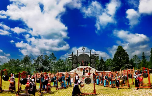 月亮河夜郎布依文化生態(tài)園,在六枝特區(qū)的西南部,那里擁有著世界上最大銅鼓和最長(zhǎng)的山脊文化長(zhǎng)廊。同時(shí),那里也擁有濃郁的布依族文化傳統(tǒng),每逢三月三、六月六、七月十五等布依族傳統(tǒng)節(jié)日,布依族同胞聚集一堂,表演銅鼓舞、姊妹蕭、抱花腰等傳統(tǒng)的民族民間舞蹈,那真是熱鬧非凡。