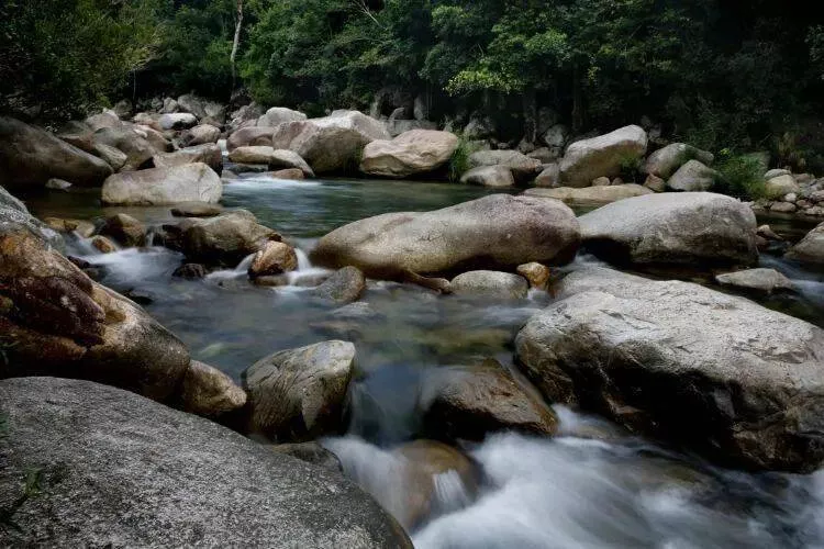 潺潺的清泉臥在溝底,松濤掩映,是大地的濕氣。大石頭,深灘,瀑布,小橋...這里風(fēng)景宜人,道路崎嶇,是低強(qiáng)度徒步愛好者的天堂。