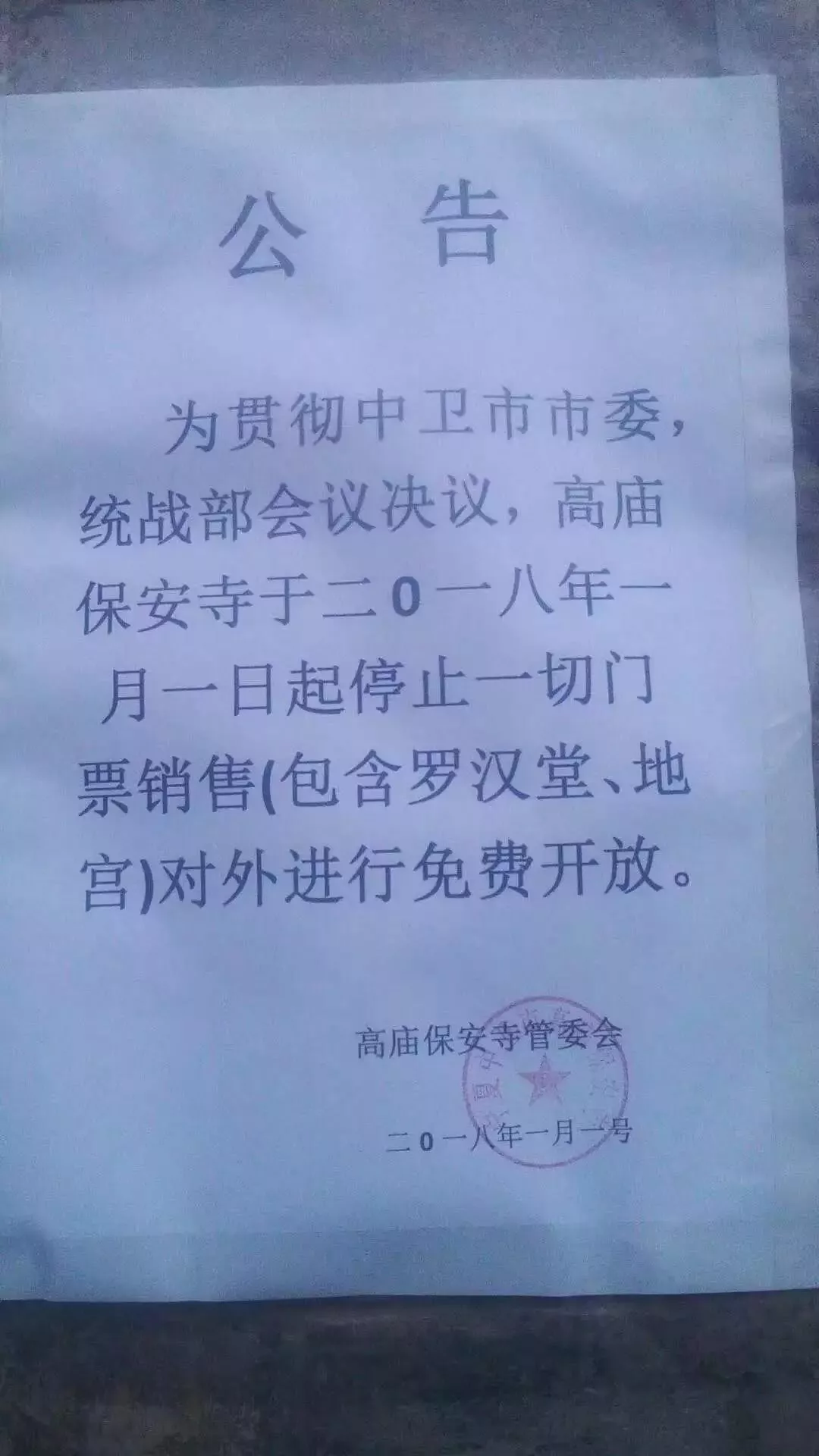 今日一則公告在朋友圈熱傳:這則落款為高廟保安寺管委會(huì)的公告稱,為貫徹市委統(tǒng)戰(zhàn)部會(huì)議精神,高廟保安寺2018年1月1日起停止一切門票(包括羅漢堂、地宮)銷售,對(duì)外實(shí)行免費(fèi)開(kāi)放。