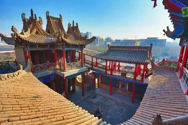 在僅2000余平方米的高臺(tái)上,建造了近百間九脊歇山、四角攢尖、十字歇山、將軍盔頂?shù)雀鞣N類型的殿宇。整個(gè)建筑群重樓疊閣,亭廊相連,翼角高翹,構(gòu)成了迂回曲折的內(nèi)外空間,從一個(gè)側(cè)面反映出寧夏古建筑的精湛的藝術(shù)風(fēng)貌,給人留下深刻的印象。
