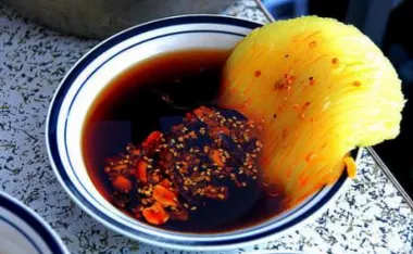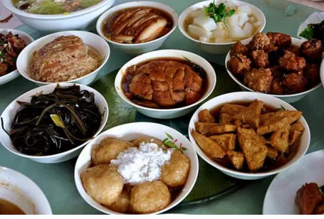 八大碗有:蔚州雜燴、虎皮丸子、梅菜扣肉、酥肉、清蒸丸子、紅燜羊肉、紅燒丸子、龍眼丸子,吃飯之前您可以先來幾塊蔚縣特色豆腐干,來嘗嘗鮮,再來點(diǎn)蔚縣的特色主食:炸糕、蕎面粭烙、涼粉、紅豆飯,最后喝上一碗熱乎乎的豌豆糊糊暖暖胃,真是好呀!
