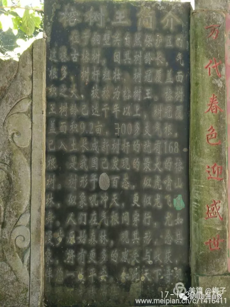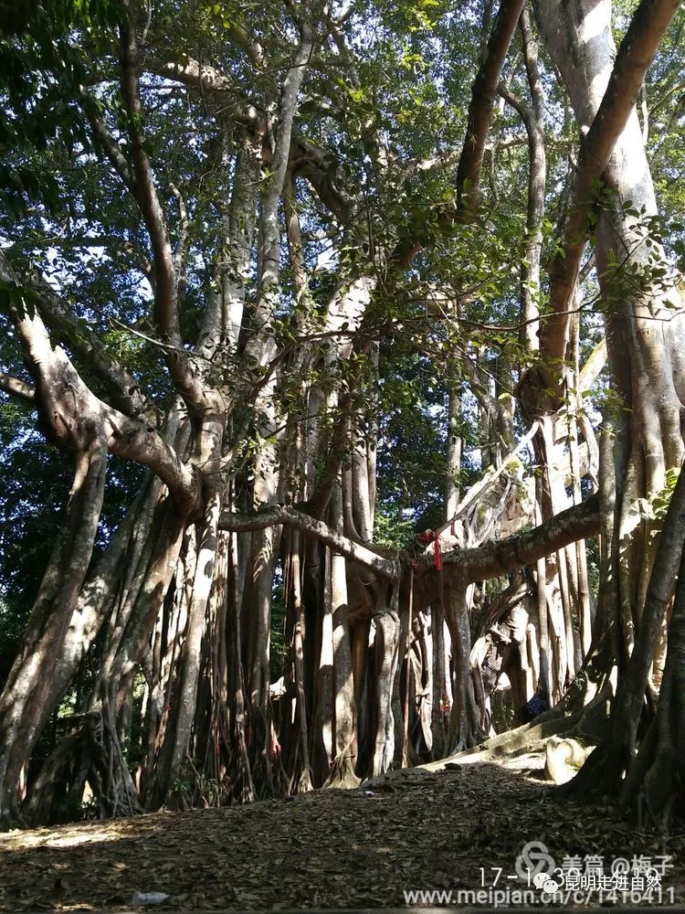 榕樹王位于銅壁關(guān)老刀弄寨旁的亞熱帶雨林中,距縣城約30公里.,樹高約40米,新樹干已達(dá)100多枝,樹冠覆蓋面稈5.5畝?!蔼毮境闪帧保?/p>