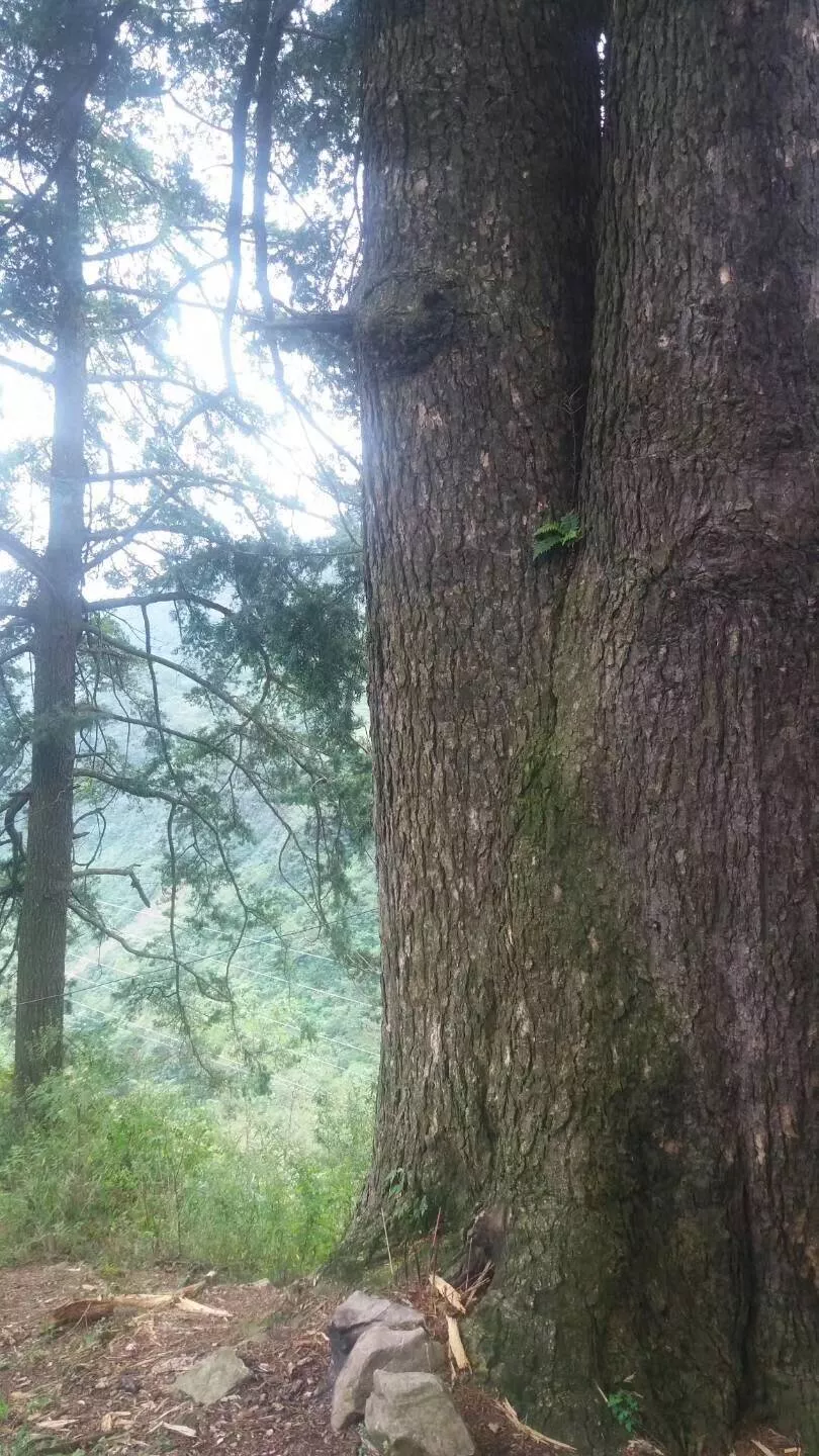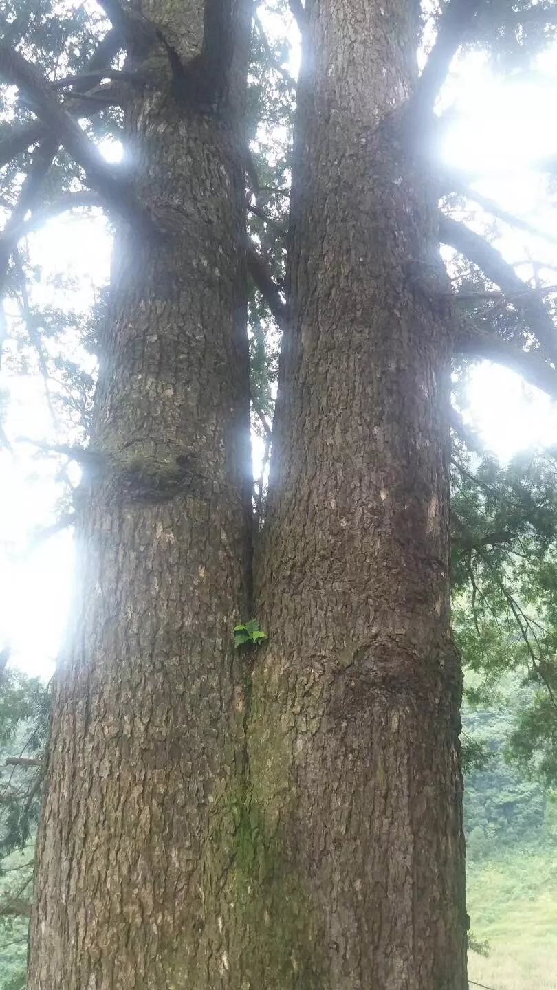 而在這棵大樹的前方,還有一棵兩百年左右的大樹。當(dāng)?shù)厝苏f(shuō),這棵“小”大樹,是后面這棵夫妻樹的兒子,他們一家三口在這大山深處,相廝相守,不離不棄。