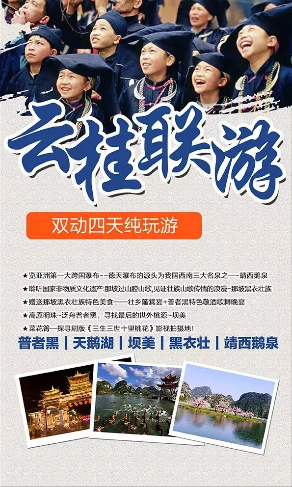 (溫馨提示:9-10月份廣南、普者黑為多發(fā)雨季,如因大雨造成【壩美景區(qū)】無法游覽時,我社將將此景點調(diào)整廣南或普者黑同等景點游覽,無費用退還。
