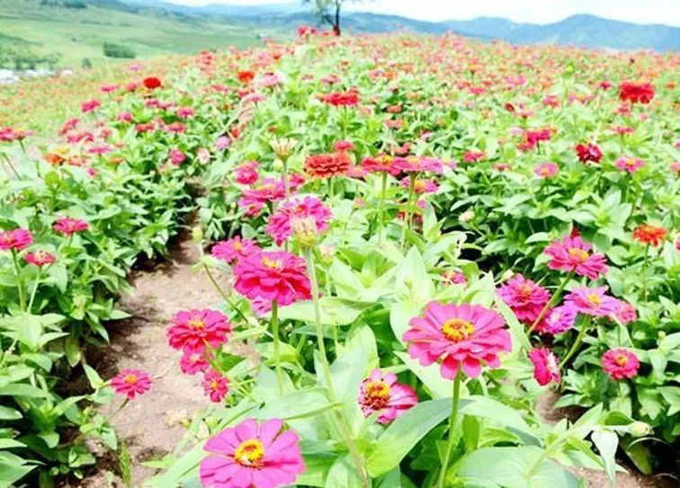 盛夏時(shí)節(jié)的日光山花海一望無垠,漫山遍野花團(tuán)錦簇。大片怒放的百日草爭奇斗艷,紅色、粉色、玫紅、橙色、黃色繽紛至極,芬芳迷人,美不勝收。穿花蛺蝶深深見,點(diǎn)水蜻蜓款款飛。在茵茵綠草和碧空的映襯下,這片花的海洋色彩斑斕,蝴蝶飛舞,令人陶醉!據(jù)了解,自日光山花海進(jìn)入盛花期以來,每天約有兩千至三千名游客慕名而來,一覽勝景。