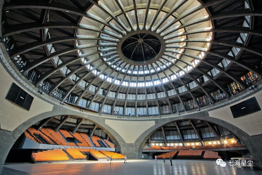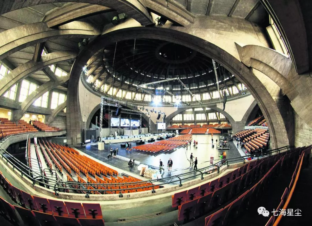 當(dāng)然,在古典建筑之外,弗洛茨瓦夫還有一批德國現(xiàn)代建筑設(shè)計(jì)師的卓越作品,其中馬克思·博格建于1911~1913年的作品百年廳Hala Ludowa是其中最重要的建筑之一。不同于諸多浪漫或威嚴(yán)的教堂,這幢建筑并無富麗堂皇的裝飾,而是以鋼筋混凝土建筑技術(shù)和現(xiàn)代工程建筑學(xué)先驅(qū)著稱,它的中心是一個(gè)直徑35米,高42米的圓形空間,約可容納6000多人。