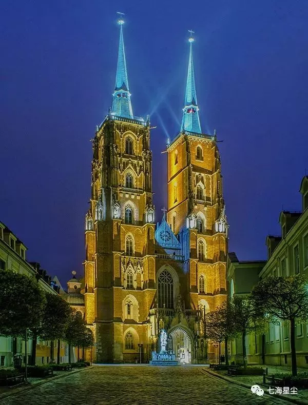 在情人橋上,遠(yuǎn)遠(yuǎn)便能望見哥特式施洗圣約翰大教堂Archikatedra ?w. Jana Chrzciciela標(biāo)志性的雙塔,這座飽受戰(zhàn)火摧殘的教堂,已是同一地點(diǎn)的第四座建筑。天主教堂在波蘭的歷史上,曾擔(dān)當(dāng)了文化傳承的重任——在滅國期間,占領(lǐng)當(dāng)局禁止使用波蘭語文,只有天主教能用波蘭文出版圣經(jīng)和天主教其他書刊,使波蘭語和文化得以保存;二戰(zhàn)期間,不少教士也以保護(hù)地下愛國人士的形式參與到反納粹德國的斗爭中。因此,如今弗拉茨瓦夫佇立著的大大小小的天主教堂,都是緘默無語的歷史見證者和保護(hù)神。