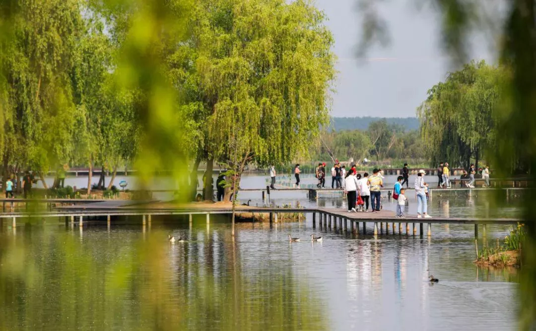 在春水綠如藍(lán)的季節(jié)里,清風(fēng)竹影、生態(tài)廣場、鶴園等等,濕地內(nèi)一個個充滿美妙詩意和浪漫的名字,憑著幾分神秘就引人遐想。