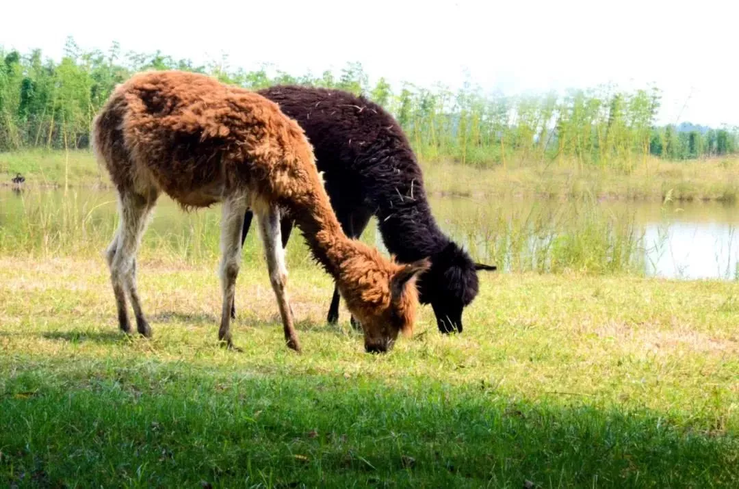 蜿蜒小道曲徑通幽,翠綠竹林里,一只羊駝正悠然吃草,一副優(yōu)哉悠哉的樣子……騎車前行不遠(yuǎn),來到湖泊南岸,水中一對鴛鴦在快樂嬉水……站在岸畔,我們一邊欣賞著眼前的美景,一邊暢談著心中的喜悅……