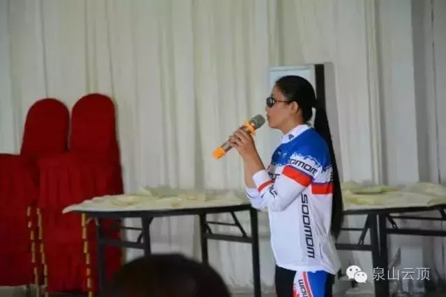 活動開始后,騎行愛好者在泉山云頂引導(dǎo)車的帶領(lǐng)下,經(jīng)河山行至泉山云頂風(fēng)景區(qū)。一路上經(jīng)過市區(qū),204國道,山區(qū)小路等路段,每位騎行者都是熱情高漲,勁頭十足,在這其中還有很多女生的身影。到達(dá)泉山云頂風(fēng)景區(qū)要經(jīng)過一段凹凸不平的羊腸小道,雖然部分騎行愛好者有些體力不支,但是全部咬牙堅持下來最終到達(dá)風(fēng)景區(qū)。
