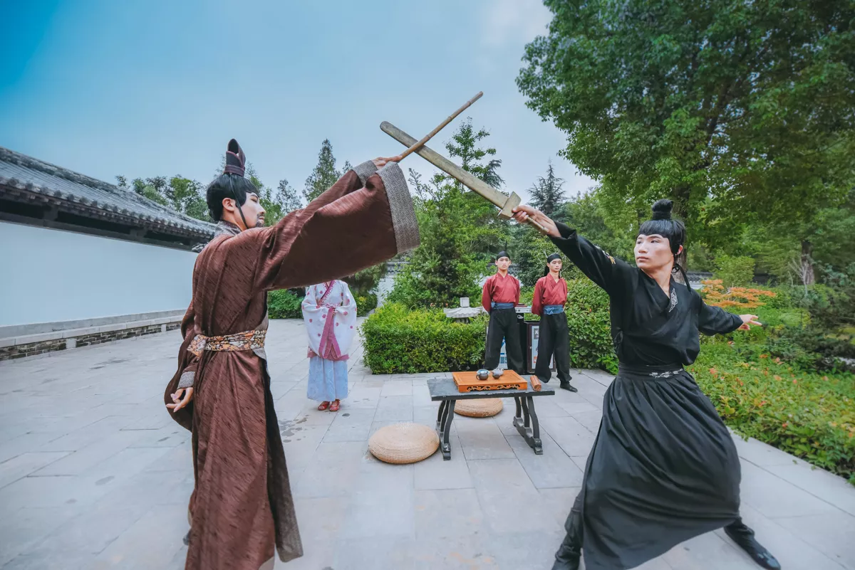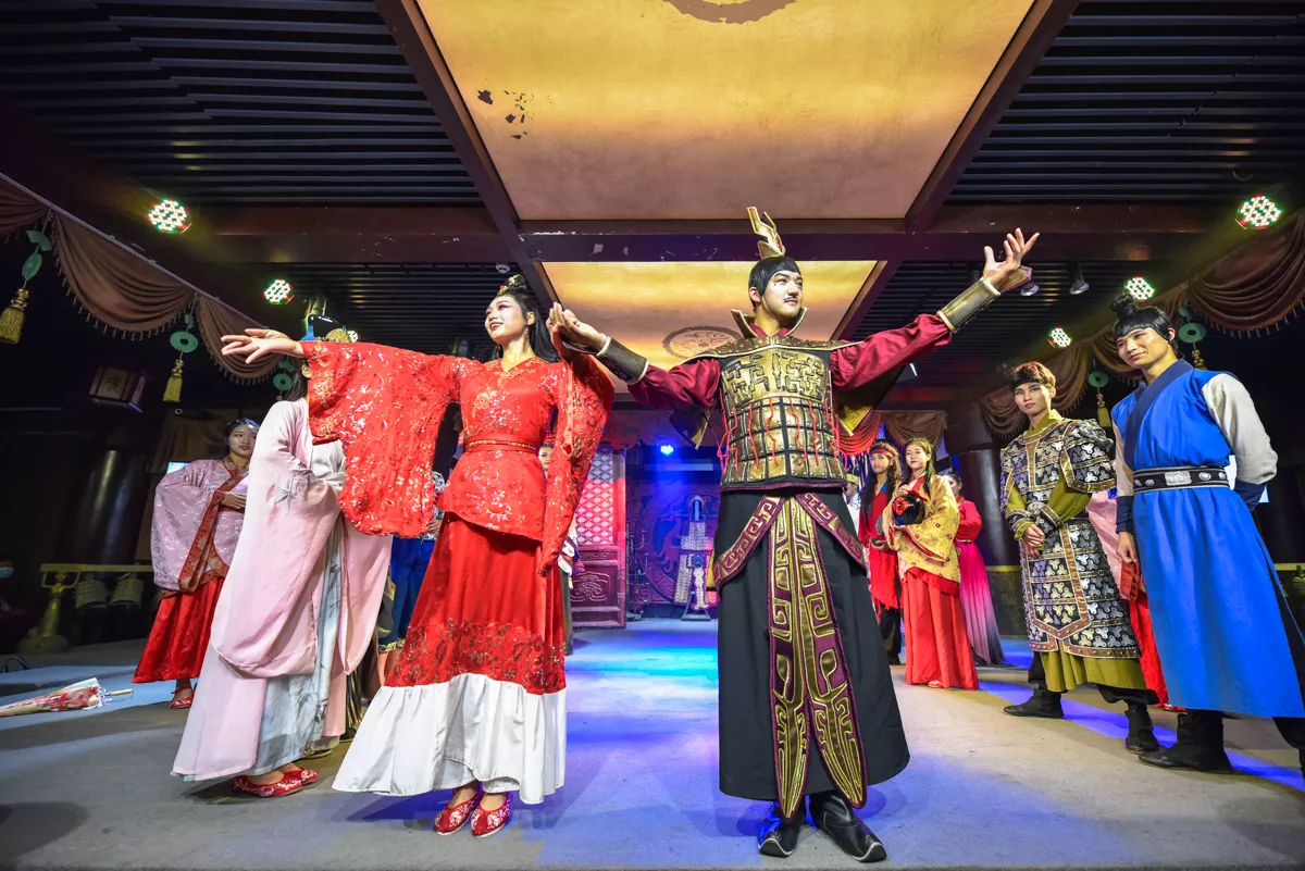 項(xiàng)王,歷史記載生于宿遷,所以故里坐落于江蘇省宿遷市宿城區(qū)梧桐巷、古黃河與京杭大運(yùn)河之間??催^《楚漢傳奇》的,對(duì)歷史肯定比較了解。他是楚國貴族、秦末農(nóng)民起義軍的領(lǐng)袖,“拔山蓋世”的英雄、西楚霸王。9點(diǎn)景區(qū)正式開城迎客,以龐大的演員陣容,展現(xiàn)了楚國禮儀。