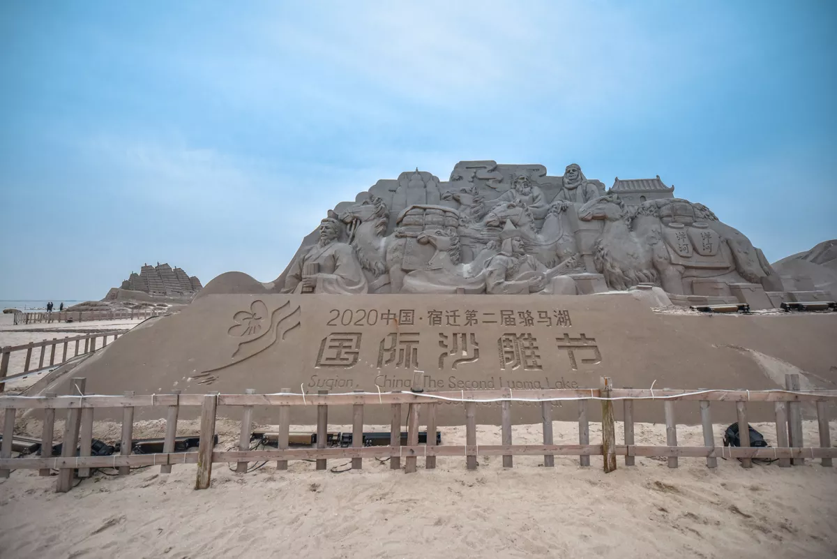 作為中國酒都(宿遷)文化旅游節(jié)系列活動(dòng)“重頭戲”之一——宿遷第二屆駱馬湖國際沙雕節(jié),在沙雕林立、燈光璀璨的駱馬湖畔盛大開幕。絲路芳華 魅力再現(xiàn)是這次展覽主題,因而膾炙人口的中國古代人物、典故,都以栩栩如生的沙雕作品,呈現(xiàn)于此。