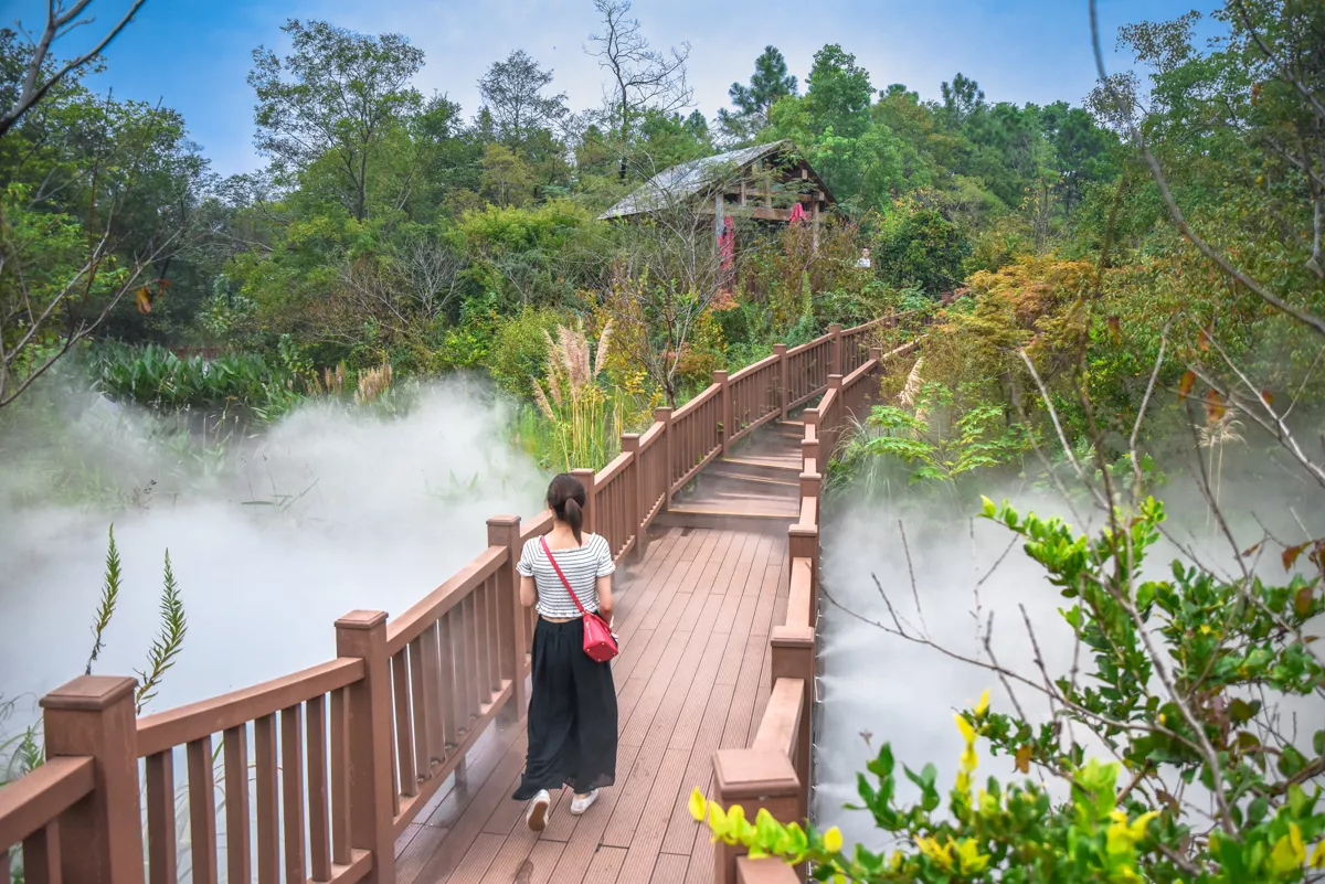初秋,晌午也熱,不如闖入景區(qū)新推出的“霧森棧道”,在迷霧蒙蒙、空氣清爽的1Km棧道里,體驗(yàn)“神仙”生活。