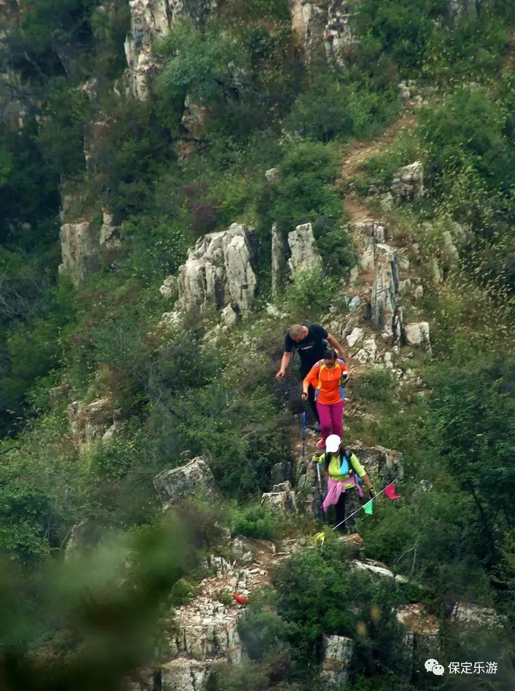 與拒馬河隔河相望的是一片起伏的山巒,一條原始的登山路線在略加修補后,成了游客們唯一的登上途徑。據(jù)當(dāng)?shù)卮迕穹Q,這條登山道是牧羊人踩踏出來的,山民們上山砍柴必經(jīng)之路。路長十公里,一般人需要三個多小時。