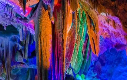 按你洞口進入,第一個洞就是人間。人間嘛,肯定有山有水啊,這個地方很大,很寬闊,很符合人間平和的特點。再往里面走就是第二個洞天堂了,這里面看上去非常的富麗堂皇,宛如人間仙境,看到這里你會有一種真的處于天堂的錯覺,讓人陶醉。再往里面就是第三個洞地府了,從天堂突然到了地府,人們還有一點不適應。這里的石乳有點嚇人,陰森恐怖,再加上燈光的特效,還真的有一點嚇人,在這里會有一種真的來到了地府的錯覺。再加上從天堂一下子來到了地府,強烈的視覺沖擊,往往給人一種特殊的美感。