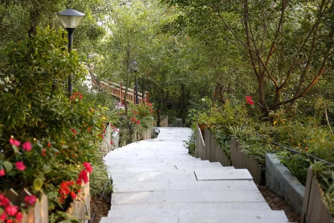 礦山修復(fù)成了陳山村整治的第一步。2013年,原本的石材礦山——英山,開始整治建設(shè)。2014年,石觀音秋風(fēng)亭、望遠亭……一座“空中花園”慢慢“降落”英山山頂,英山生態(tài)公園已開始成型。如今,經(jīng)過6期的工程建設(shè),英山生態(tài)公園已不復(fù)當(dāng)時千瘡百孔的礦山形象,取而代之的是登山道路、休閑走廊、休閑廣場、健身路徑等,沿途更有許多花草樹木,郁郁蔥蔥地在英山上生長著。英山生態(tài)公園也成為英山村民及周邊村民休閑的好去處。沿著石板路拾級而上,風(fēng)景秀美,令人心情愉悅。
