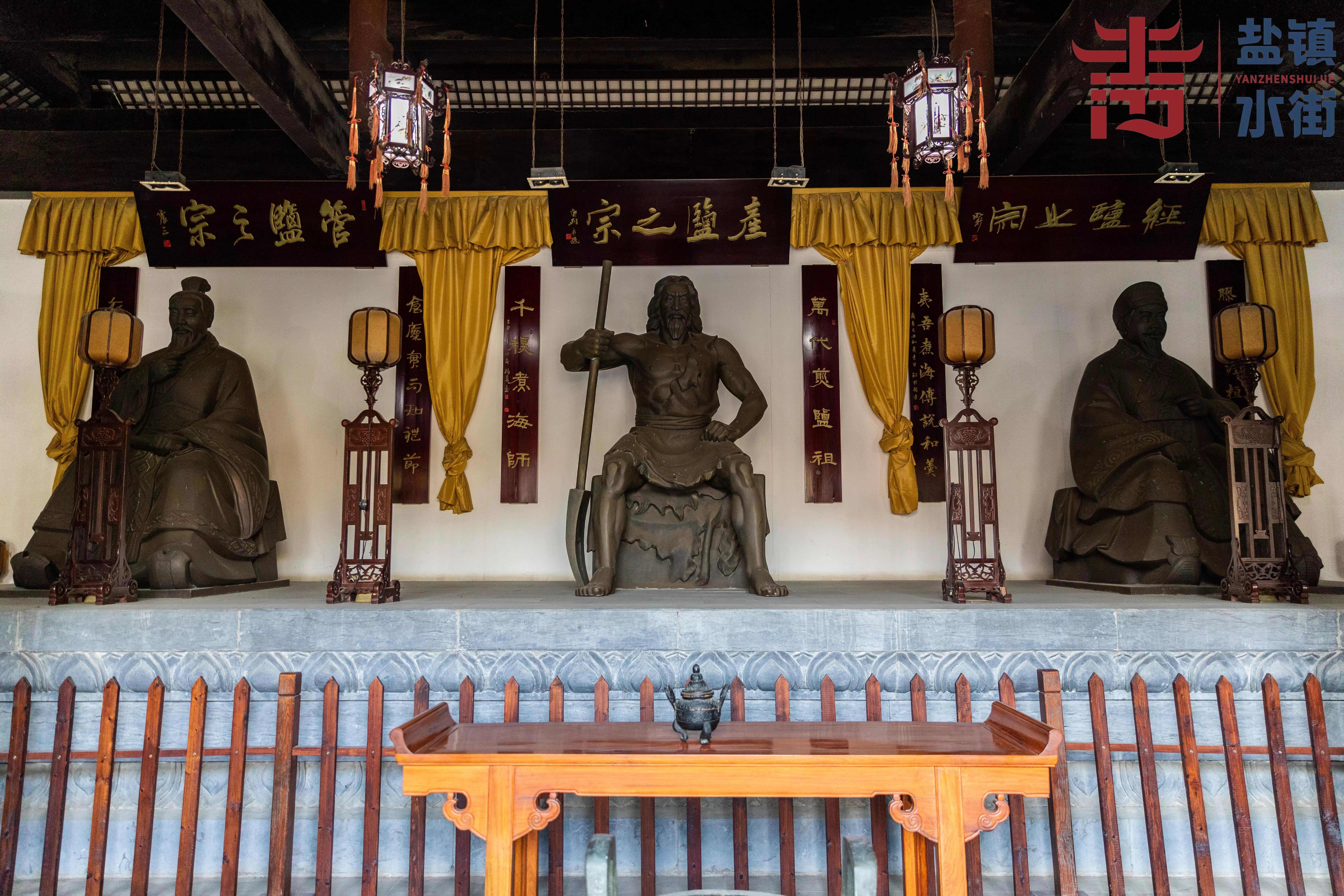 首先映入眼簾中間主殿供奉產(chǎn)鹽之宗夙沙氏、經(jīng)鹽之宗膠鬲、管鹽之宗管仲