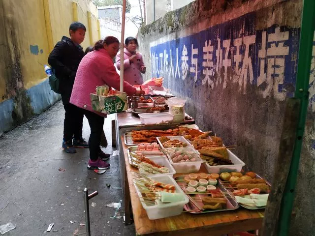 狹窄的小道,我對這里的記憶是,是我們那時候的酸菜、榨菜。記得我們還在讀小學(xué)時,早餐吃一碗邵陽米粉或是一份小籠包,一元錢就能搞定。而在東塔小學(xué)門口擺放的酸菜之類的,1毛或是2毛錢就能滿足到我們。對于當(dāng)時賣酸菜的老奶奶,我想很多在東塔小學(xué)讀書過的同齡人都會有印象吧?上次再回東塔小學(xué),沒有看到記憶里擺在地布上的酸菜和榨菜,但仍然有著不少中小學(xué)生愛吃的美食。