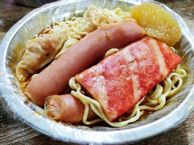 麻辣燙的選擇很多,一般來說我會點一份泡面,再搭配著火腿腸、燕餃、骨肉相連、雞柳、蟹排、蘿卜 、黃花菜等菜品。在這兒吃麻辣燙,很容易一不小心就點多,店家的服務(wù)態(tài)度不是太好,可能就是小城里的慣性吧!比如你和老板說要一串黃花菜,她就會在不經(jīng)意間給你放兩串。