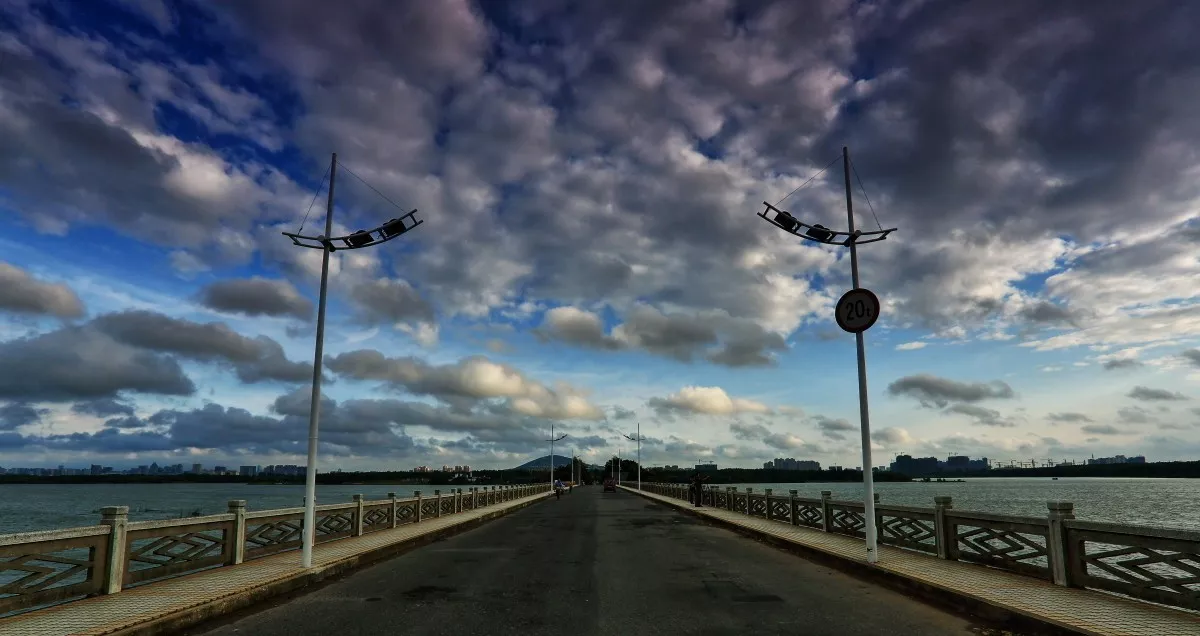 一個(gè)難得的傍晚,感覺(jué)云開(kāi)始要消散,夕陽(yáng)被大塊的云遮住了,有些昏暗。科學(xué)島大橋上變幻的云和美麗的色彩,讓人流連忘返!