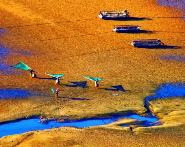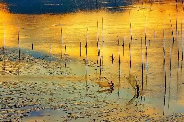 大小船兒穿梭其間,構(gòu)成夢幻般的畫面