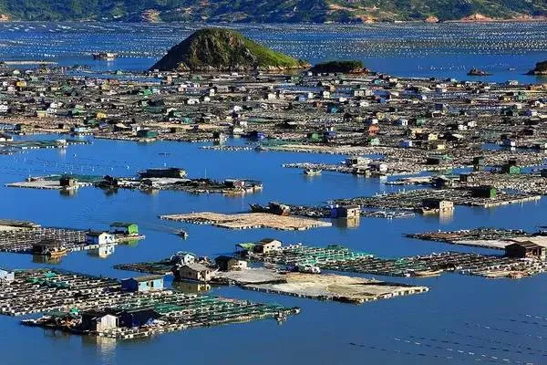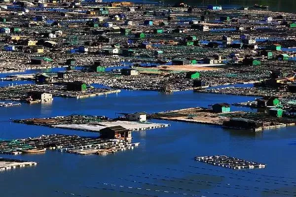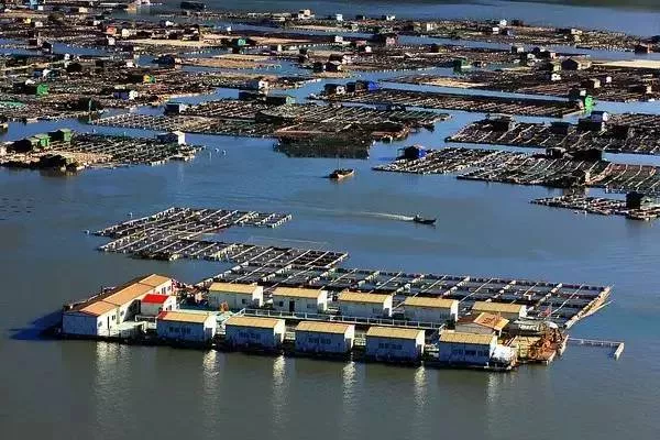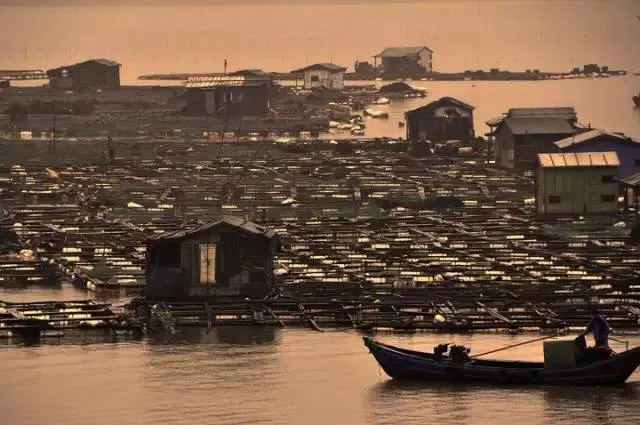 這里由數(shù)十萬個魚箱和數(shù)百個小木屋組成的海上魚排