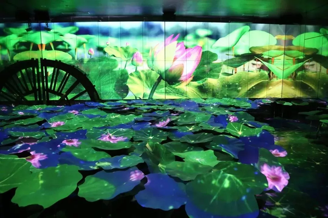 燈光投射下的荷景,恍若置身于“接天蓮葉無窮碧,映日荷花別樣紅”的荷塘之中。