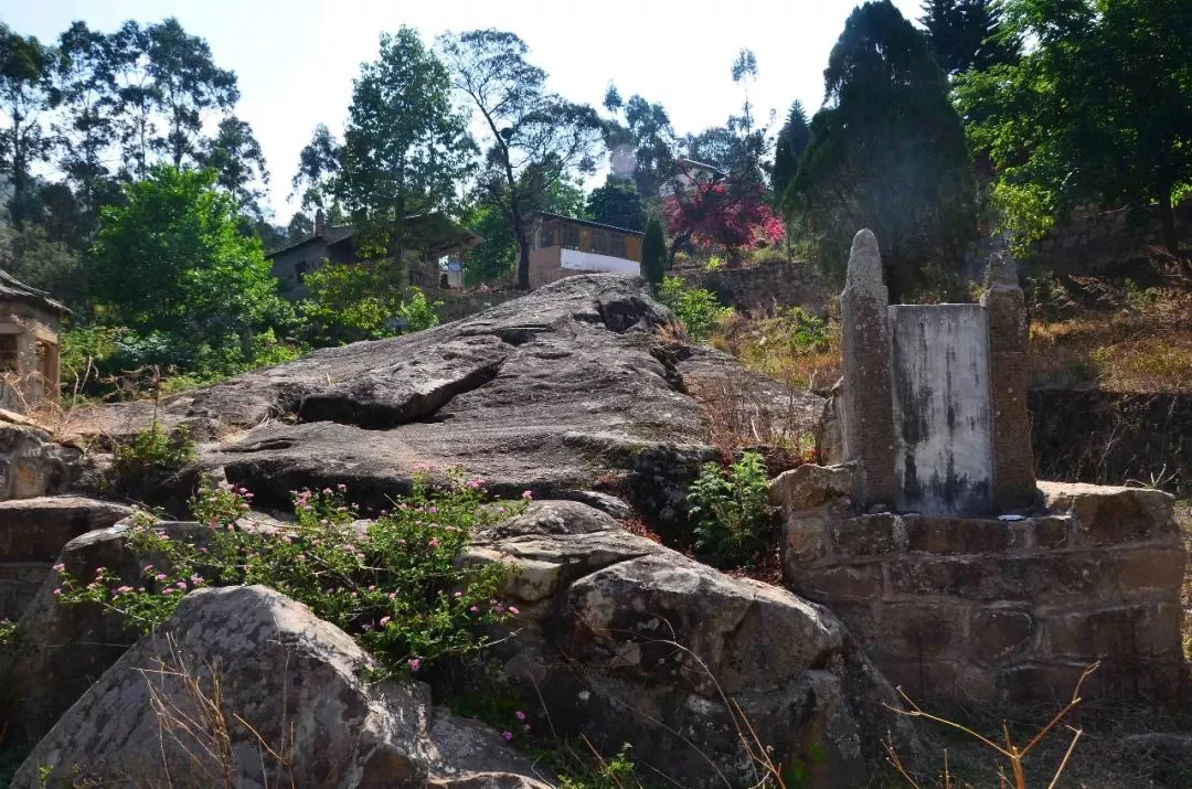 穿過(guò)墓碑沿著階梯拾級(jí)而上,映入眼前的是一塊大石頭,左右各有一塊石碑,原來(lái)這就是那口石棺,是在天然的大石頭上鑿出來(lái)的。這就是陳翼叔墓,他自作詩(shī)挽:“明末孤臣,死不改節(jié),埋在石中,日煉精魄,雨泣風(fēng)號(hào),常為吊客”讓后人刻于石棺旁。