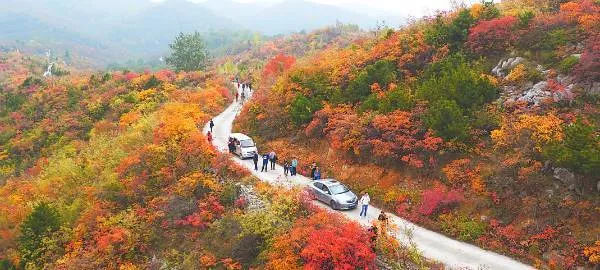 ▲精準(zhǔn)扶貧、全域旅游、保護(hù)古村落等政策的出臺(tái),為長(zhǎng)嶺村的發(fā)展帶來了千載難逢的好機(jī)遇。圖為游客們?cè)隈v足觀賞紅葉美景。