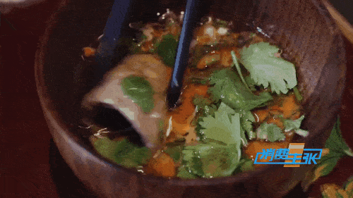 用手將糌粑做成小勺子的形狀,舀著碗里的生牛肉醬吃。拉巴次仁大廚說,因?yàn)檫^去家里沒有勺子,所以當(dāng)?shù)厝税l(fā)揮聰明才智,把糌粑捏成勺子用。