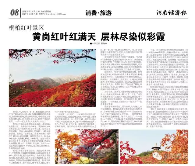 桐柏縣紅葉旅游開發(fā)公司紅葉景區(qū)總經(jīng)理張園說,桐柏紅葉景區(qū)是以自然風(fēng)光為依托,以盤古文化、西游記文化、山石文化和紅葉文化為內(nèi)涵,以生態(tài)觀光、休閑度假為主題,是具有獨特魅力的生態(tài)旅游景區(qū)。近年來,景區(qū)加大投資力度逐步完善各項配套設(shè)施,形成了吃、住、行、游、購的旅游綜合體,每位游客都可以在這里享受到大自然帶來的樂趣,也歡迎各位貴賓再次來到紅葉景區(qū)游玩欣賞!