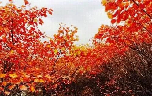 為什么到了秋天,這些綠葉就會變紅呢?是因為啊,霜降后氣溫明顯降低,葉片中的葉綠素逐漸分解,樹葉里的花青素葉黃素和胡蘿卜素就顯露出來。樹葉含糖越高,花青素和胡蘿卜素就越多,樹葉就越紅。黃崗的紅葉紅的更為特別:山腳下鮮紅,半山腰絳紅,山頂紫紅。山越高紅的越濃烈,彩色相宜,風(fēng)流婉麗!在古代,關(guān)于紅葉為什么這么紅有很多神話色彩的說法,有說是皇帝殺了蚩尤后兵器上染上了血變成了楓樹,葉子自然成了紅色,還有說是盤古開天辟地時的碧血染紅的。