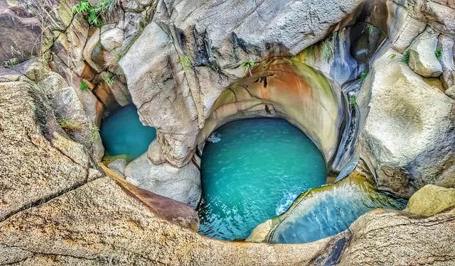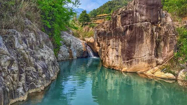 坪上村的水潭、瀑布群、石臼群分幾個(gè)地點(diǎn),彼此相隔兩三百米,如果你時(shí)間充裕,建議你全部看完更過癮。