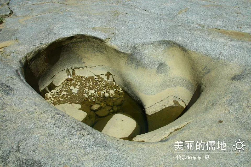 我最喜歡的是平坦寬闊的石坪上幾個(gè)大石臼(有人說是冰臼),其中有一個(gè)像心形,可惜有點(diǎn)偏心了,呵呵!