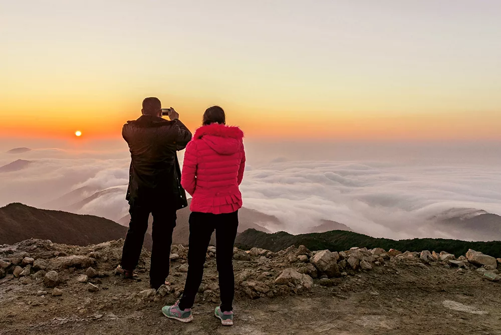 等她拍完照,男同伴才過去拉住她的手臂,不讓她再去危險(xiǎn)的地方了。